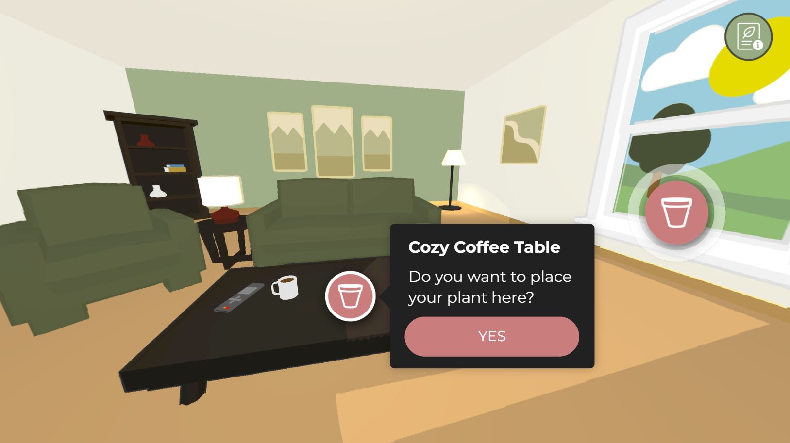 With their plant repotted, it is time to find it a new home with adequate sunlight. In this immersive 360° photo scene, learners explore a bright, cozy room to find the ideal spot for their plant. They can pan around the space to examine locations such as a windowsill, a coffee table, and a dark shelf, each offering different lighting levels. This activity simulates the real-world challenge of finding the right environment for a succulent and helps learners understand the differences between direct sunlight, indirect sunlight, and no sunlight in a visually engaging way.